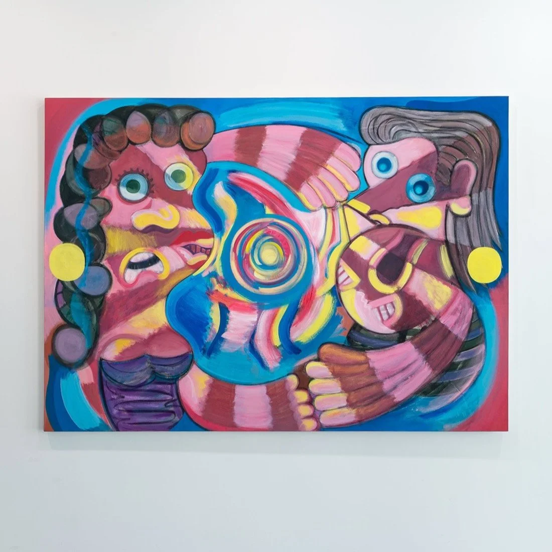 Peter Schenck is a NYC born and Brooklyn based artist and curator. His paintings reveal his astute knowledge of art history as he draws on sources as disparate as Cubism, Chicago Imagists, Philip Guston and even some Pop Art thrown in for good measure. Schenck digests these varied references to create paintings and drawings that touch on the life of a painter in an ever-changing political landscape. There is an irreverent humor and a joie de vivre in the way he uses kaleidoscopic movement and disorienting pile ups of images- leaving the viewer breathless, but satisfied.